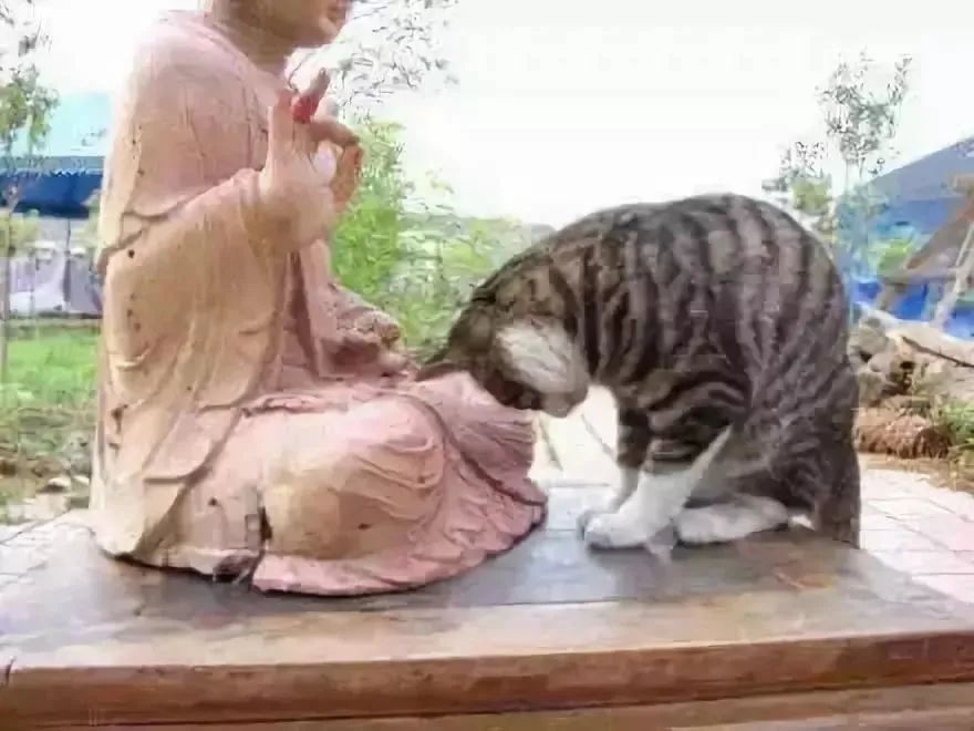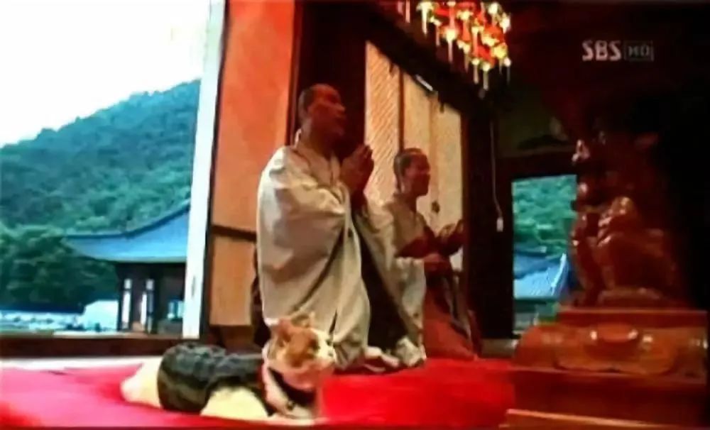 这只猫咪是一个高僧剃度时带来的