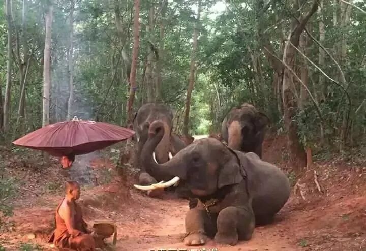 三只大象遇到修行中的高僧