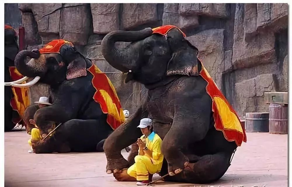表演中的大象也打坐似的膜拜