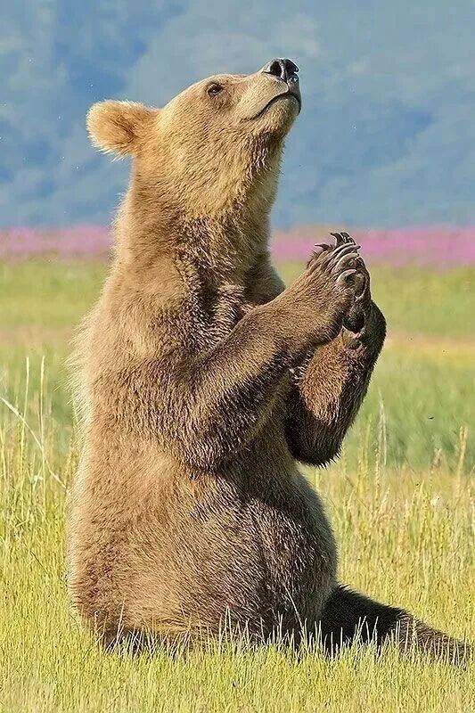 棕熊竟然望向钟声的方向双手合十