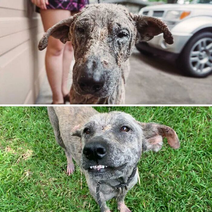但后来,在好心人和志愿者的帮助下,它慢慢卸下了伤痕,露出真面目...