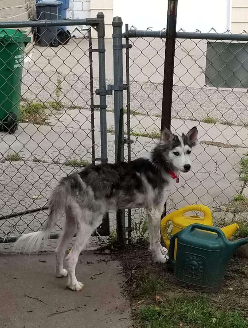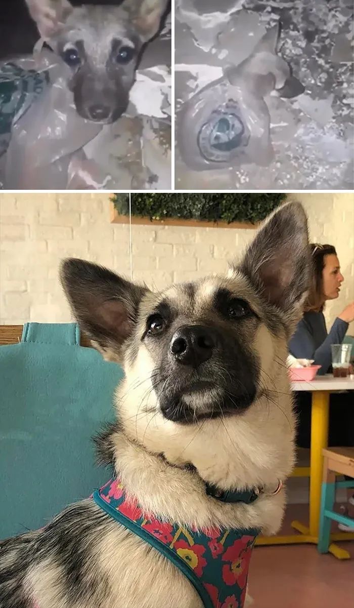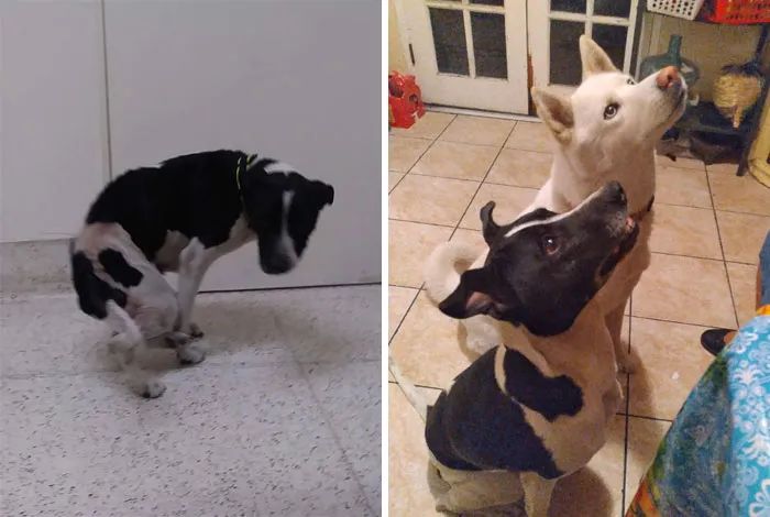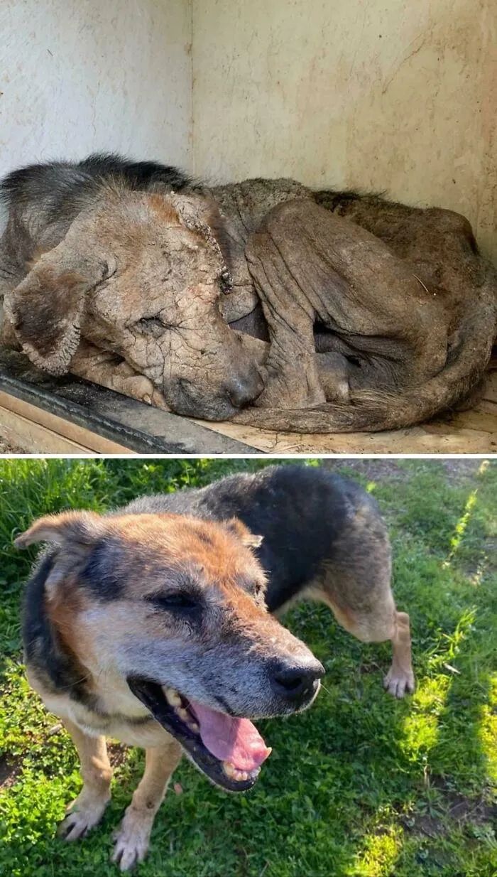 “第一张图:被拴在后院桌子下六个月后,前主人因为它有疥癣想要安乐死它...