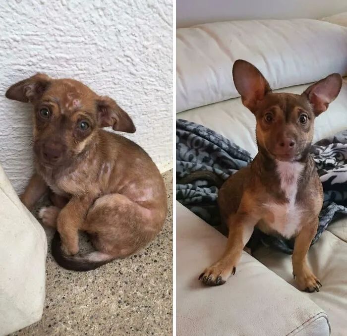 “一个多月前刚领养的一个宝宝,当时它有疥癣和营养不良,好消息是,现在的它非常健康!”