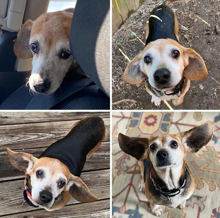 “快来看看这个孩子耳朵的变化:捡到它的时候→发现它是流浪狗→和我们在一起的第一天→现在!”
