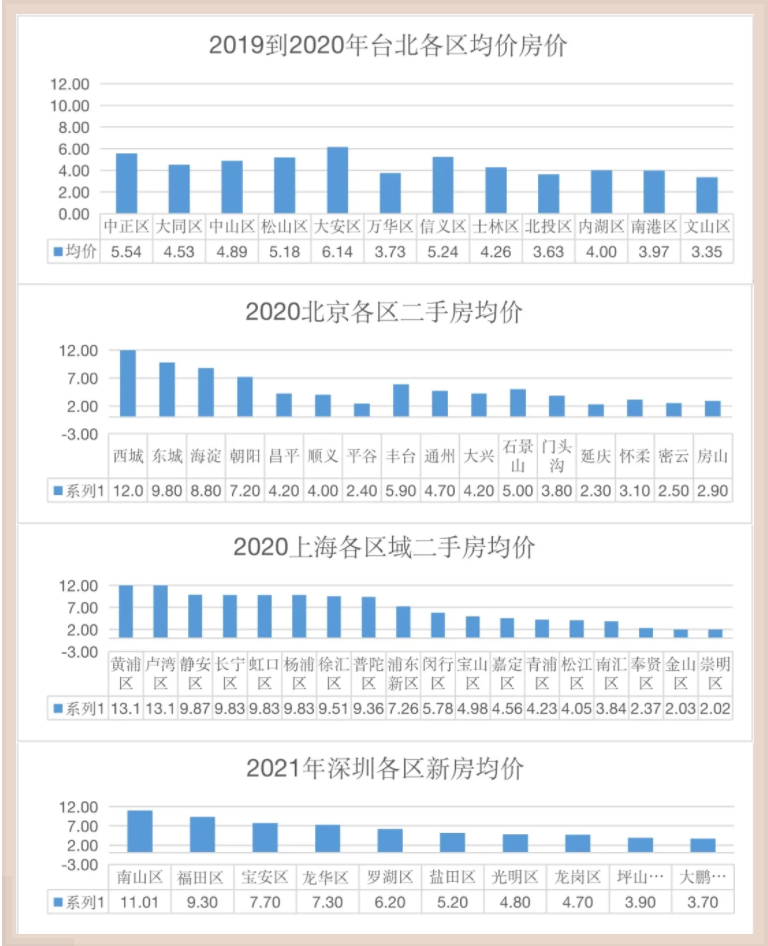 放眼今日,京沪深房价已远超台北,大陆新一线城市的房屋均价比新北区的好地段有过之无不及。