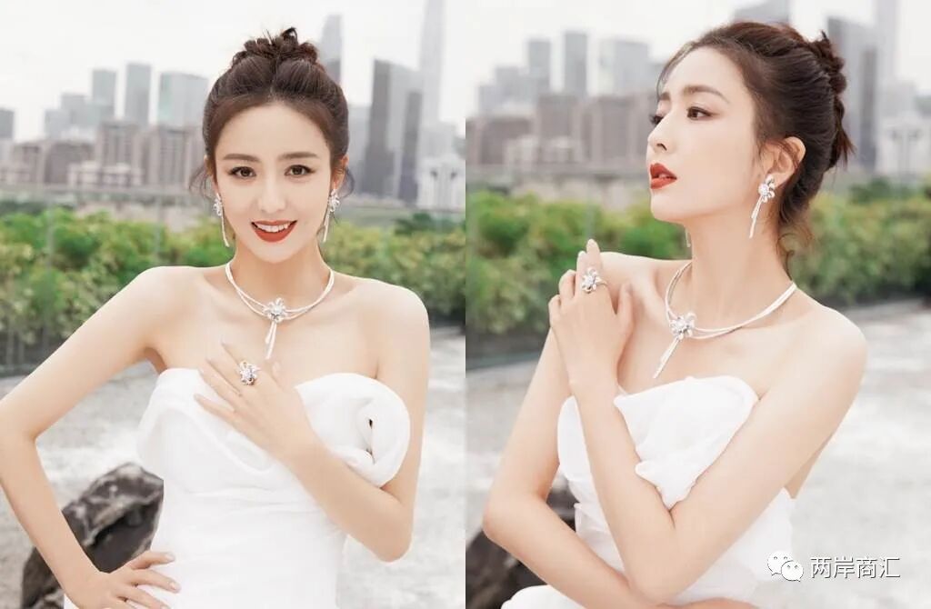 可见她白色短裙礼服上身,脖子上点缀戴上华丽珠宝,裙子后方还有拖曳拉长设计,让佟丽娅举手投足都充满仙气,