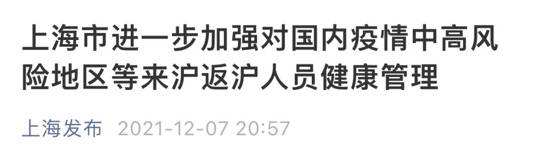 对所有来自或途经国内疫情中风险地区的来沪返沪人员,一律实施14天严格的社区健康管理,实行2次新冠病毒核酸检测(第1、14天)。