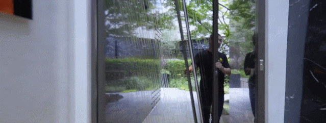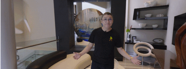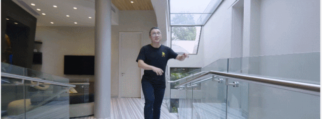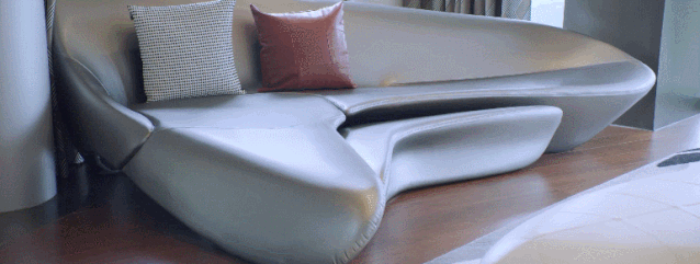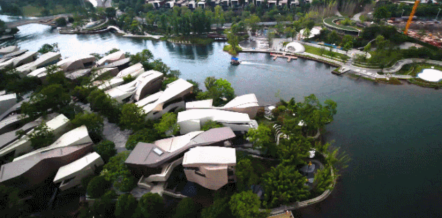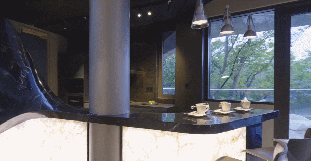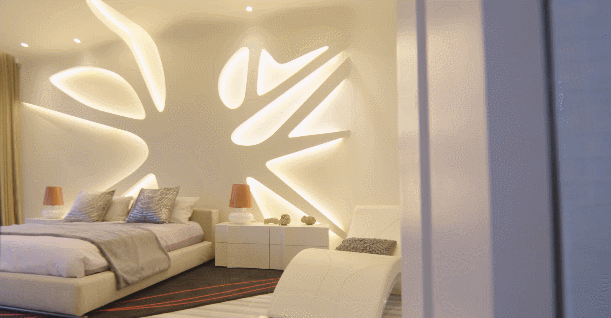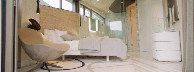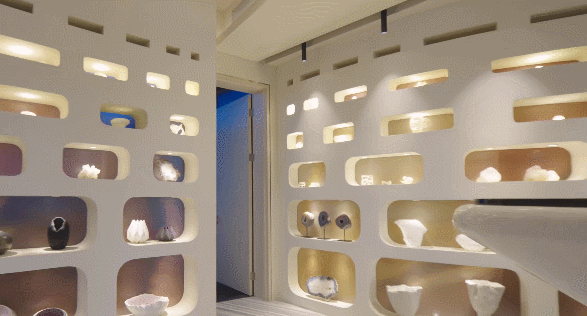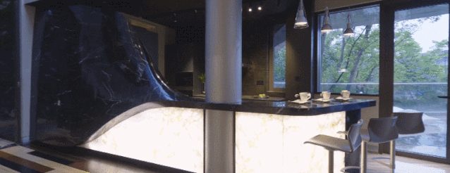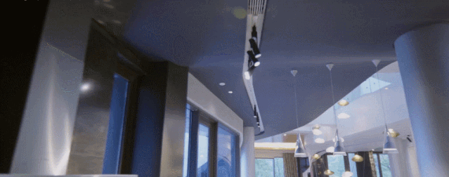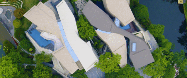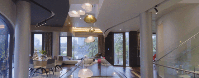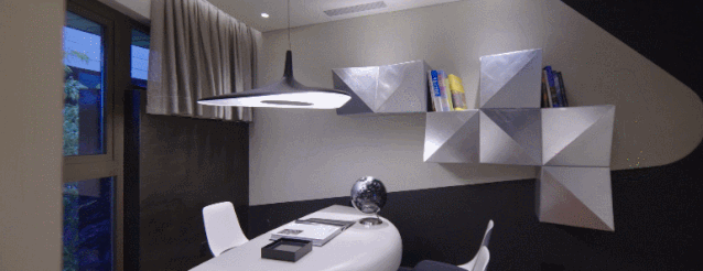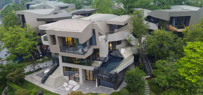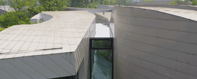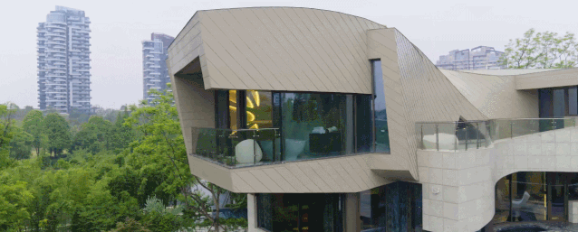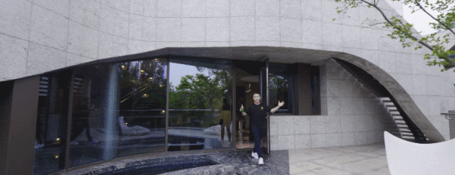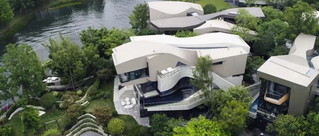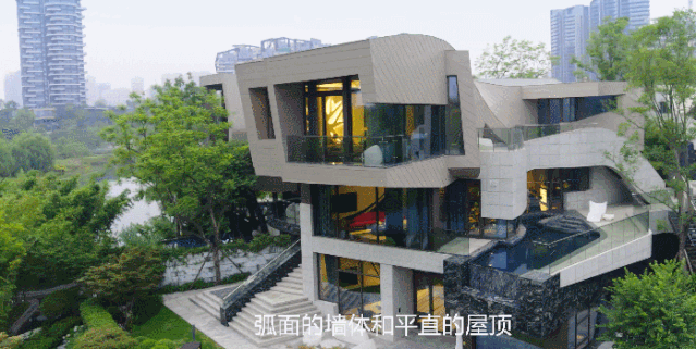 这栋别墅由弧形墙体与平直的屋顶交相呼应
