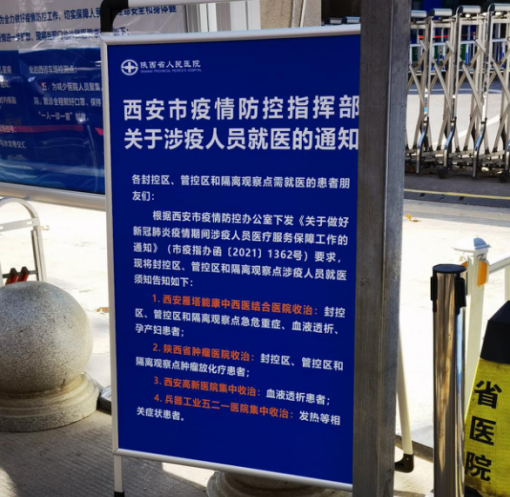 西安对隔离点、封控区、管控区需要紧急就医的人员,安排专车“点对点”送至定点医院就医,并闭环接回。
