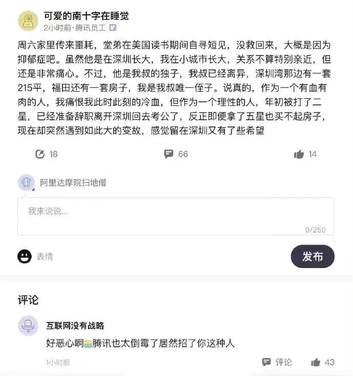 前几天,一位腾讯员工在网上发的帖子,引起了热议。