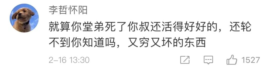 “就算你堂弟死了,你叔还活得好好的,还轮不到你知道吗,又穷又坏的东西。”