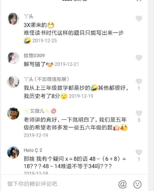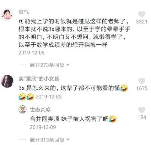 但评论区却让人大开眼界,许多人说自己看不懂,不知道3X怎么来的,怪老师说得太不详细了。