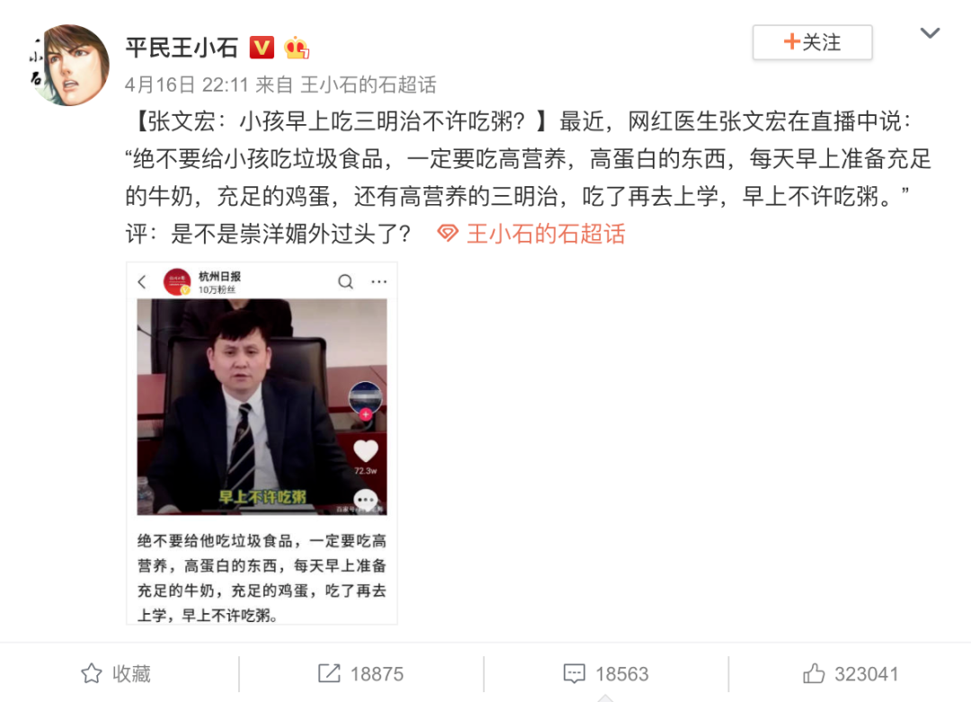 居然有那么多人听不进张文宏医生的意思,揪住“不许吃粥”这几个字眼骂个不停。