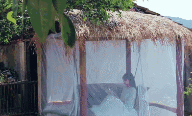 院子里有木制的凉亭,竹制的秋千架,夏天可以在这里吹风乘凉;
