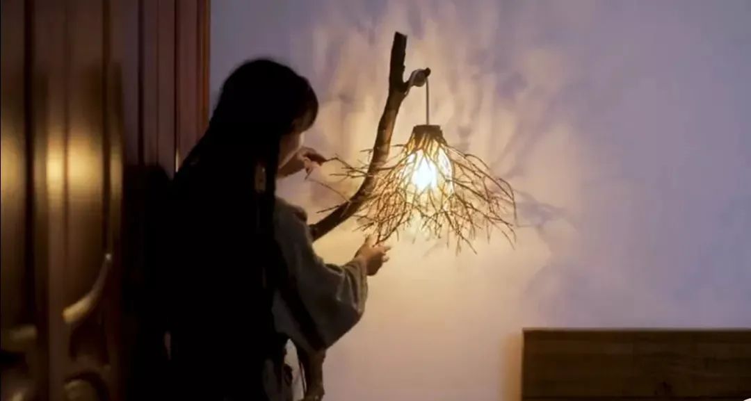 就连树林里其貌不扬的枯树枝,也被她修剪成精致独特的床头灯罩......