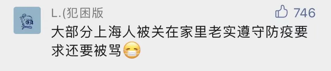 “大部分上海人被关在家里,老实遵守防疫要求,还要被骂。”