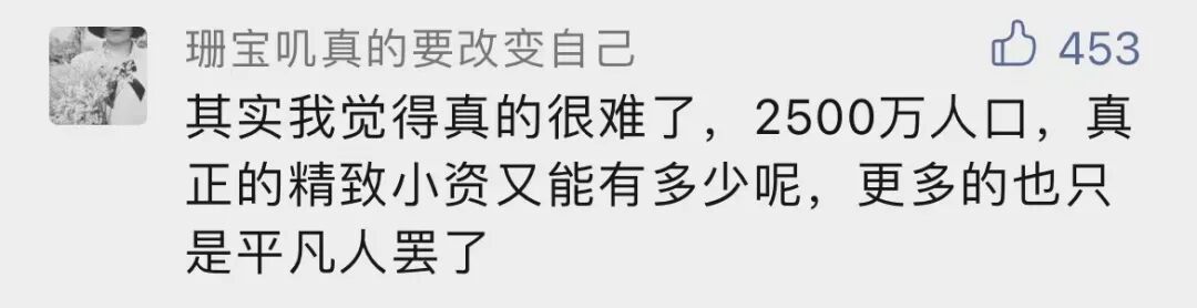 “其实我觉得真的很难了,2500万人口,真正的精致小资又能有多少呢,更多的也只是平凡人罢了。”
