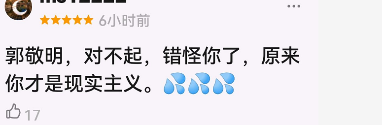 更有人急着给郭敬明道歉:“郭敬明,对不起,错怪你了,原来你才是现实主义。”