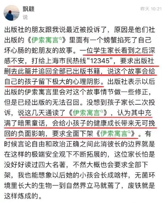 《伊索寓言》里居然有螃蟹掐死了坏心肠的蛇朋友的故事?不行,这会给孩子留下多大的心理阴影啊,必须下架。