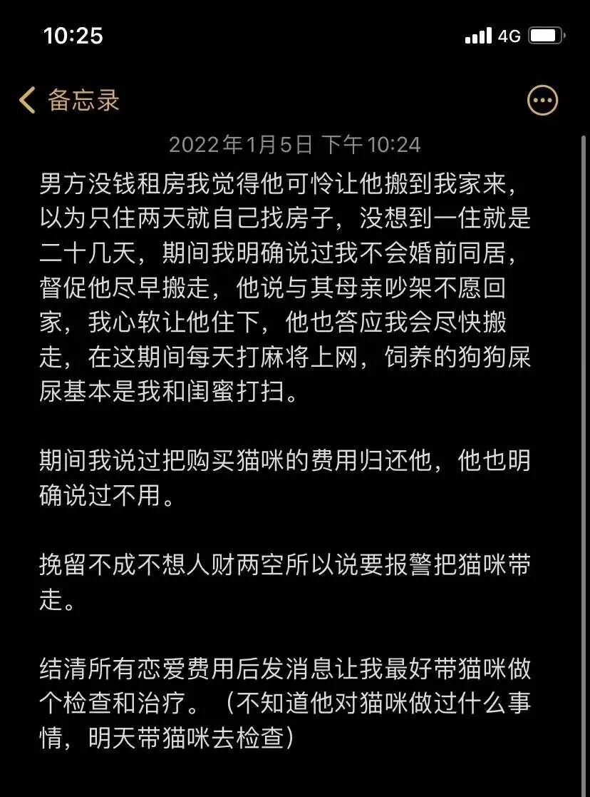 原来,男生因为没钱租房,所以一直在女友房子里蹭住。