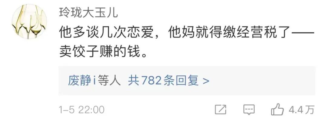 “他多谈几次恋爱,他妈妈就得缴经营税了——卖饺子赚的钱。”