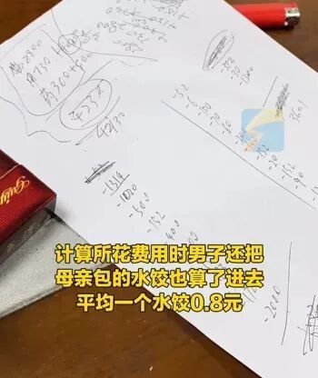 奇葩的是,费用里面居然还包含了他母亲包的饺子,一个八毛钱。