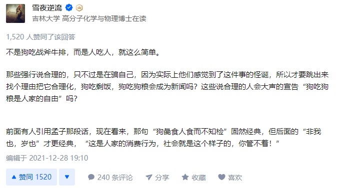 狗吃剩饭,狗吃狗粮会成为新闻吗?这些说合理的人会大声宣告狗吃狗粮是人家的自由吗?”