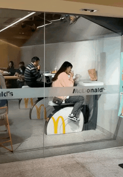 麦当劳的这个特殊座椅设计得确实挺有意思,解决了年轻女孩吃高热量食物怕胖的痛点。