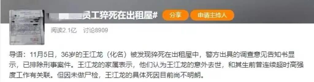 前两天,一位36岁某大型车企的员工,猝死在自己的出租屋内。