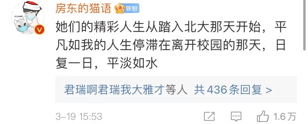 “她们的精彩人生从踏入北大那天开始,平凡如我的人生停滞在离开校园的那天,日复一日,平淡如水。”