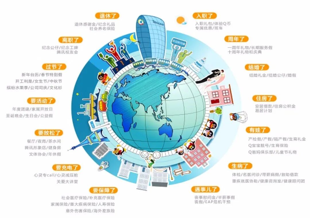 比如腾讯,从你入职到退休,人生的各个重要阶段,都给你准备好了福利: