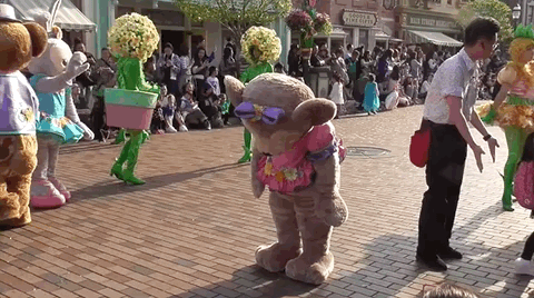 之前在香港迪士尼乐园的巡演中,就有一只叫“玫玫”的小熊,走着走着突然出现眩晕现象,最后蹲在了地上无法站起。