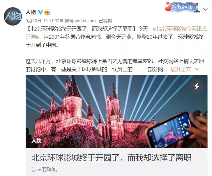 《人物》杂志就曾对一位从北京环球影城离职的员工进行过采访,从而得知: