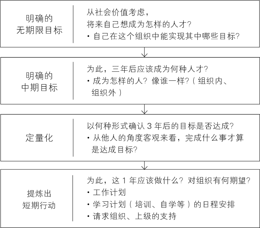 从想象大约10年后的自己并明确目标,比如想成为经营者、成为这个领域的第一人等。