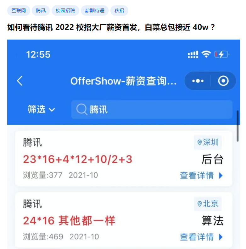 前几天,腾讯的校招薪资曝光,冲上了各个社交平台的热搜。