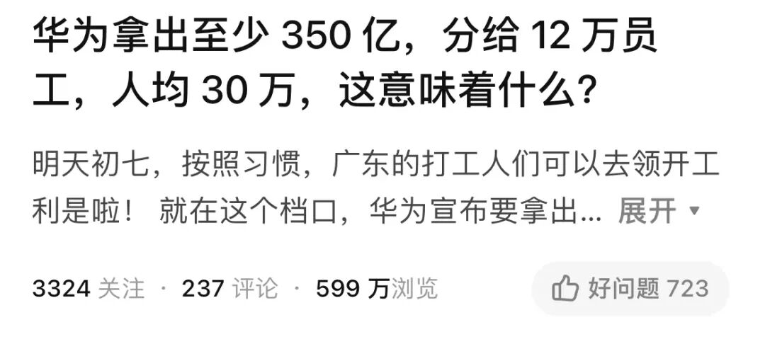 “华为拿出至少350亿,分给12万员工,人均30万,这意味着什么?”