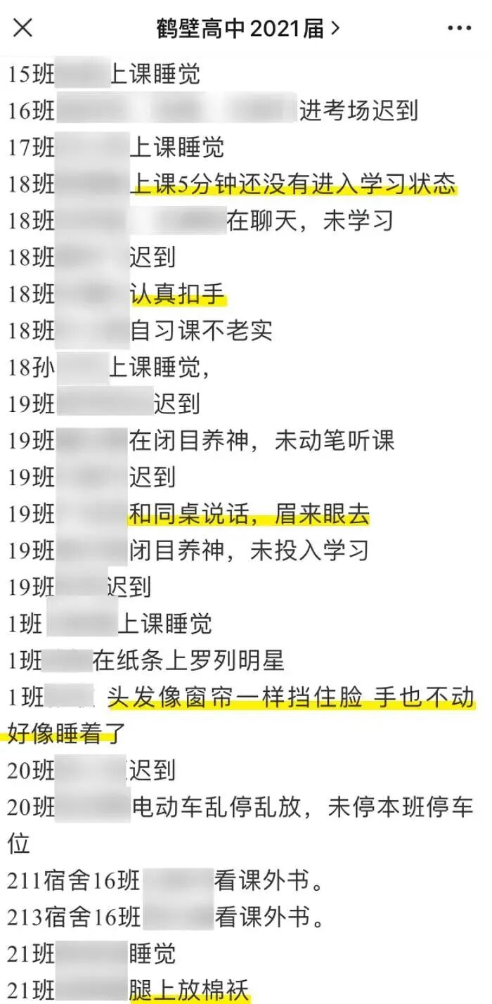 前几天,一份鹤壁高中的学生违纪通报在网上疯传,上了热搜。