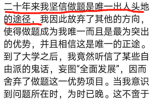 他在遗书中写道:“二十年来我坚信做题是唯一出人头地的途径,我因此放弃了其他的方向。