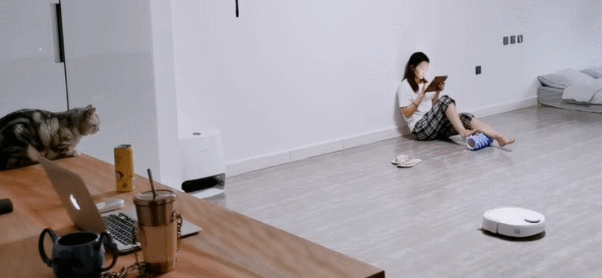 她搬到了一个新房子里,房间里只摆了一张床、特别简单的一些家具,变得空旷又整洁;