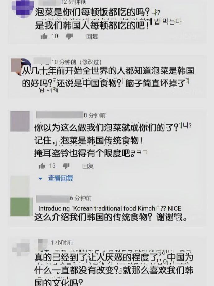 离谱的是,从头到尾视频里都没有丝毫体现出关于泡菜的归属问题,但这群韩国网友就如同被踩了尾巴的猫一样,急得跳脚。