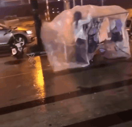 就像这个在路边摆摊买衣服的姑娘,还没赚到今天的晚饭钱,就被狂风暴雨吹打得措手不及;