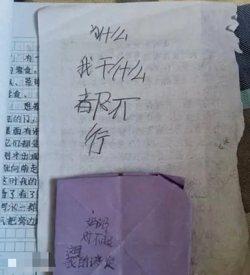 女孩的遗书上写着:“为什么,我干什么都不行。妈妈对不起,这是我的决定。”