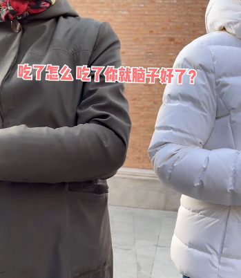 一位路过的大妈对此表示不解,问一名排队买咖啡的博主:“吃了这个,你就脑子好了?”