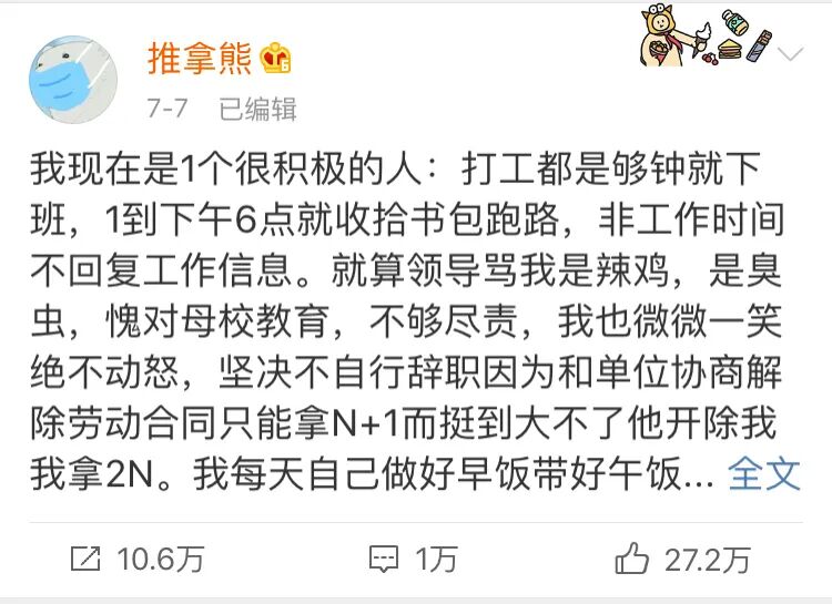 前段时间,一篇社畜爽文在微博上被疯狂转发,获得了27万点赞。