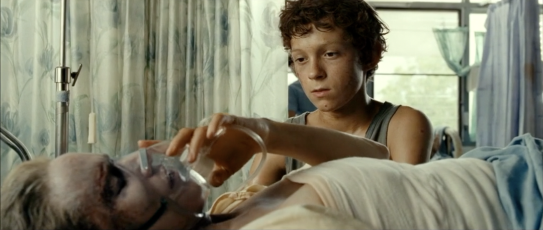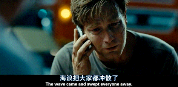 仅仅讲述海啸开始到逃生的两天时间内的事情,所以导演利用一些巧妙的细节,给了观众很多的提示。