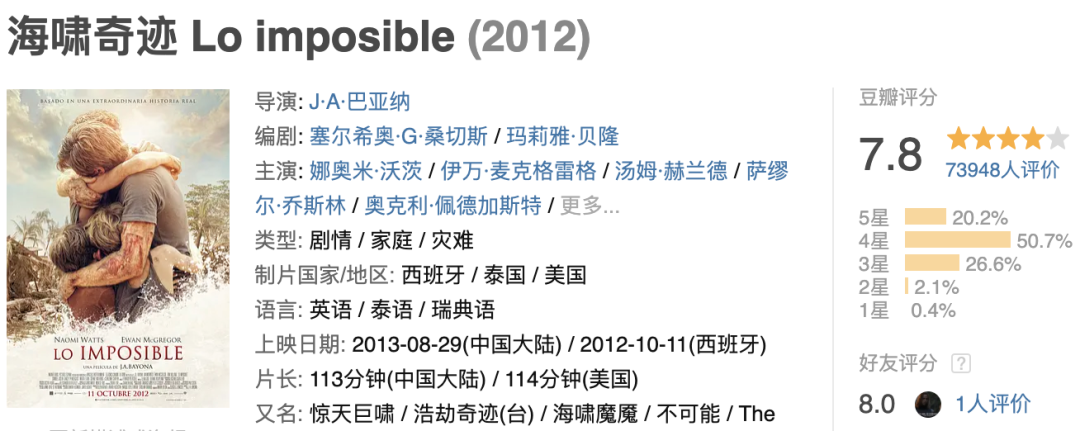 我自认为自己是一个灾难片爱好者,但最近发现竟然漏掉了一部《海啸奇迹》