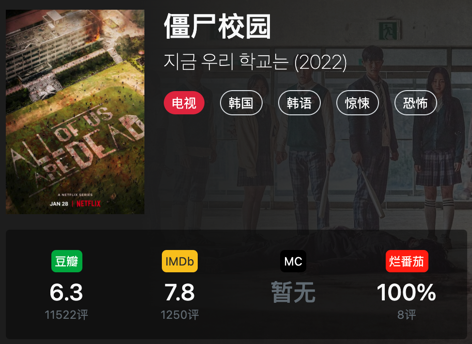 韩国网飞的丧尸题材剧集《僵尸校园》(All of Us Are Dead)终于上线了,这部剧在国内和欧美得到了两极分化的评分。