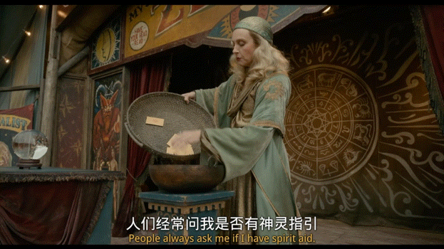 并与混杂在人群中的丈夫皮特交换暗号,以此给观众算命。