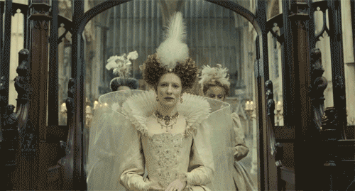 《伊丽莎白》里,她可以把英女王白墙一样惨白的脸演得美丽又生动⬇️