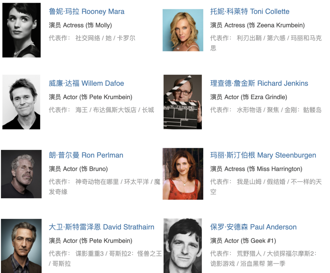 演员是本剧的另一大看点:所有卡司阵容中共有8名演员曾入围奥斯卡金像奖。